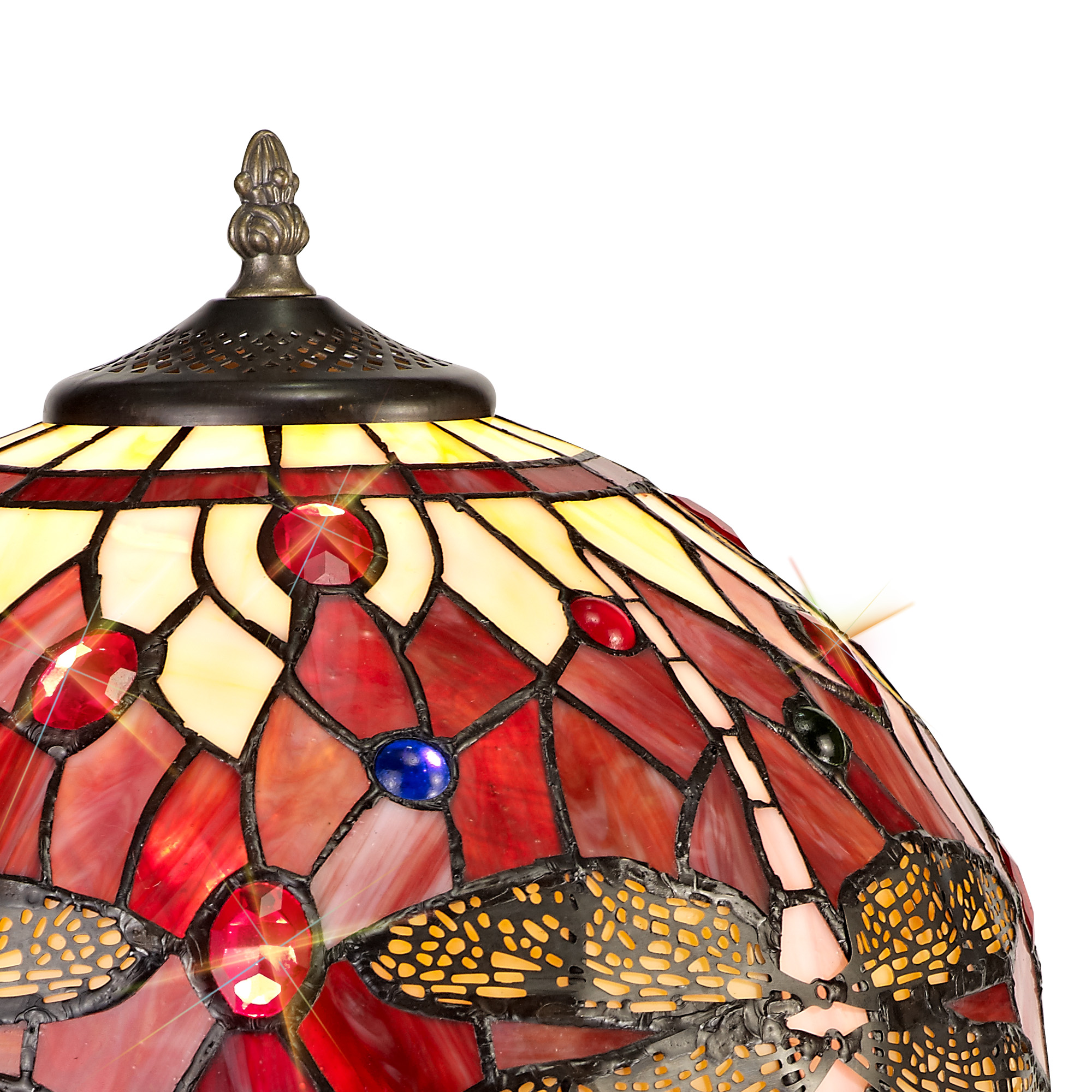 00587 Dragonfly Tiffany Table Lamp Purple/Pink