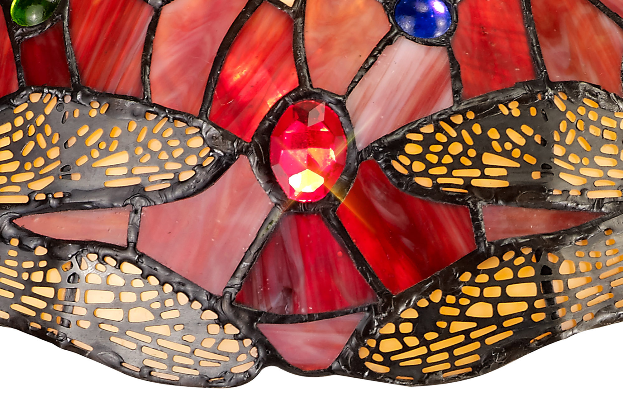 Tiffany glass design features the classic dragonfly form, effortlessly fashioned into the overall mosaic collection of Tiffany glass pieces. Reinterpreting an old-fashioned concept, additional crystal pieces have been inserted into the glass shades providing a touch of modern sparkle and elegance. Available in two colour finishes this beautiful pattern is featured across a comprehensive variety of lighting solutions.