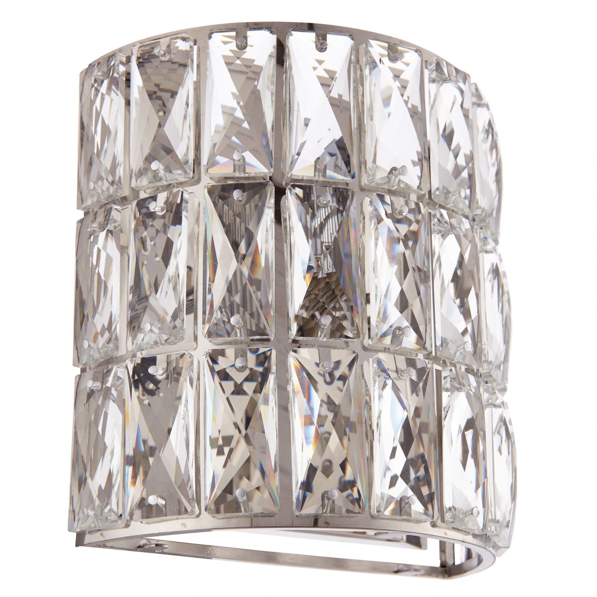 High quality clear crystals adorn this deluxe chrome plated wall light. The combination of clear crystals and polished chrome create a luxurious interior decorative wall light,