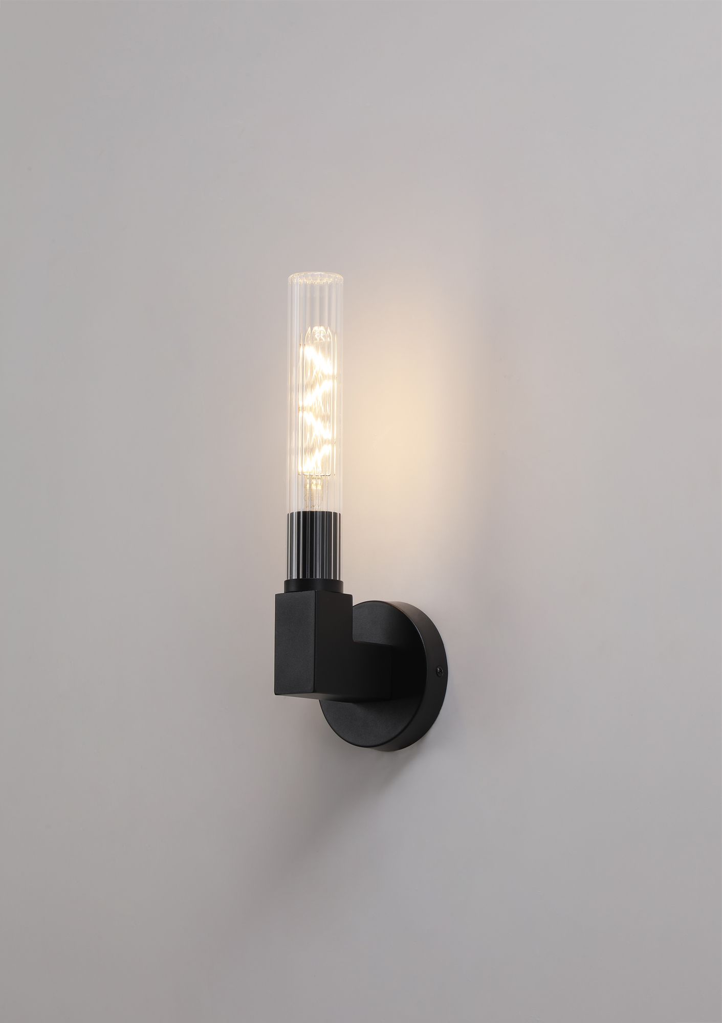 Asmin is a sleek and stylish IP44 lighting collection. The slim, grooved, tubular glass make the design ideal and cohesive for use in bathrooms.