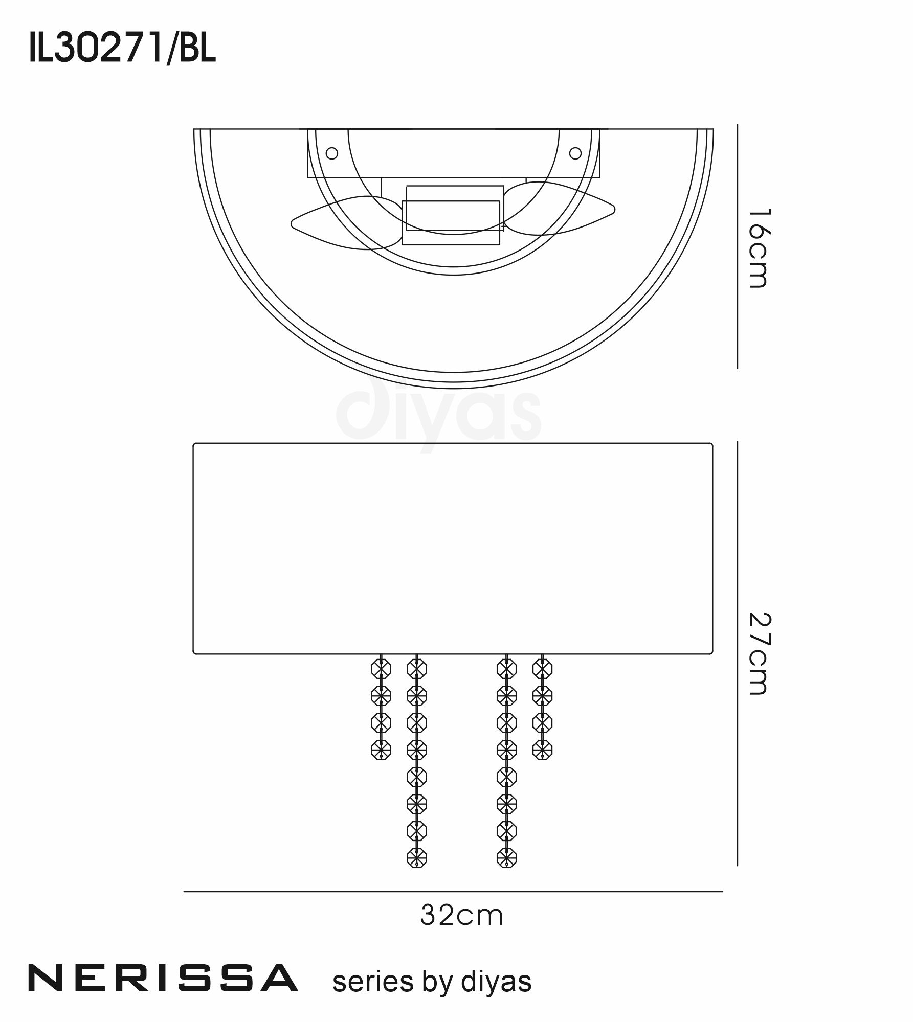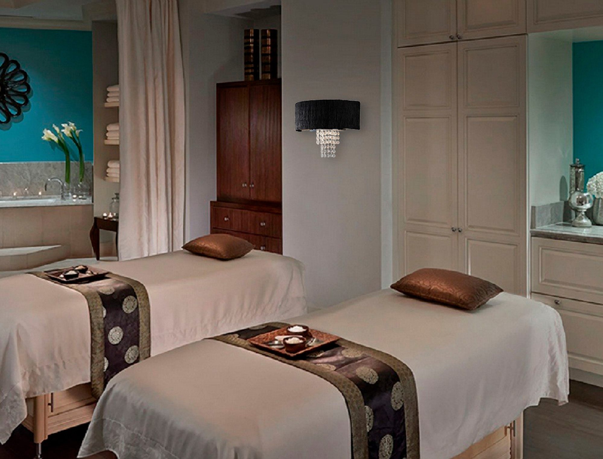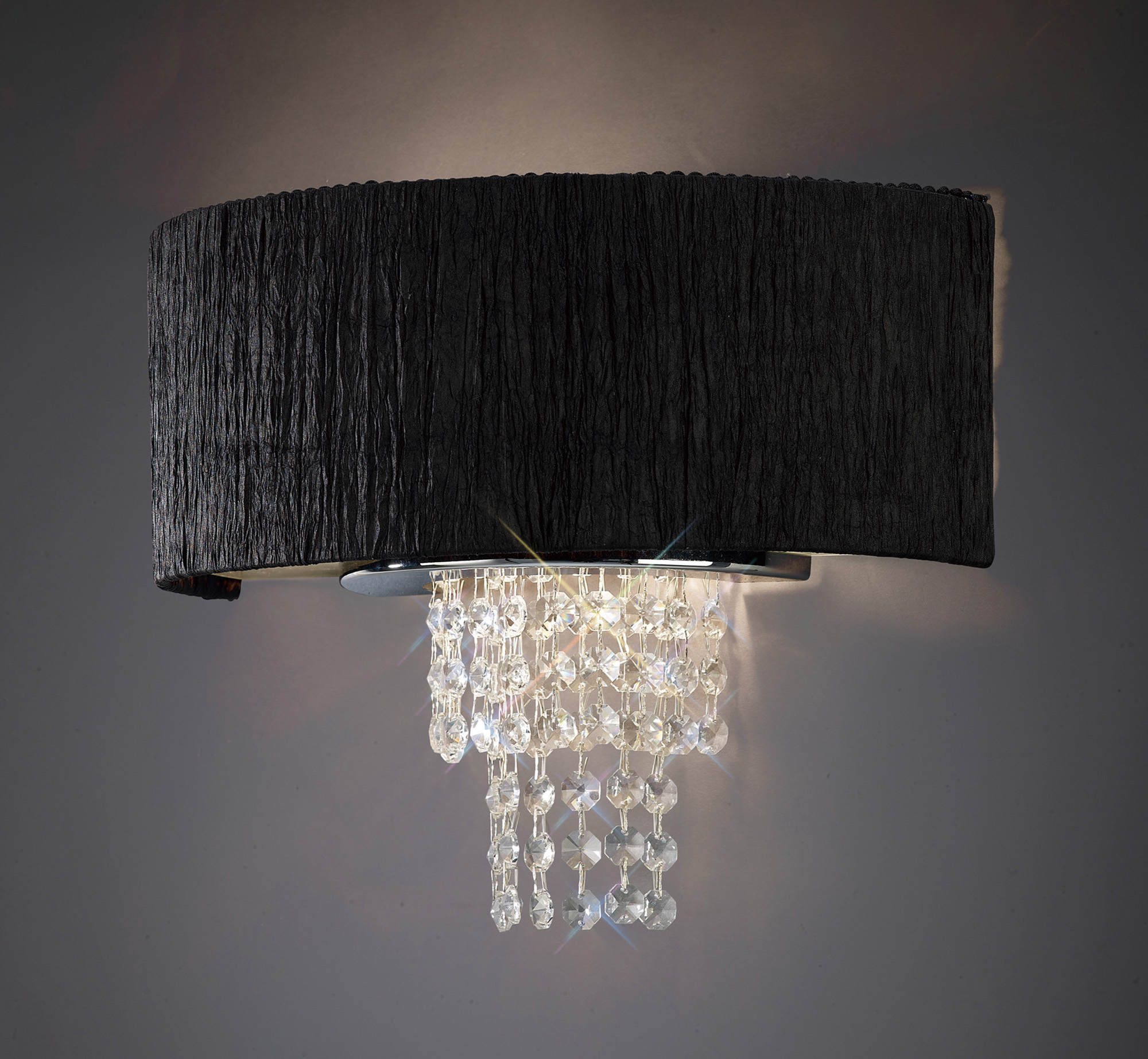 1530271BL 2 Light Crystal Wall Light With Black Shade