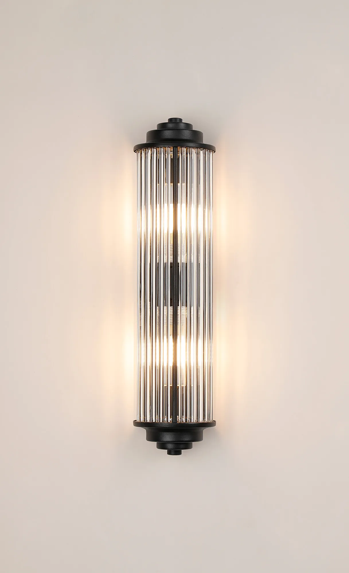 Trend 2 Light Bathroom Wall Light Black & Glass Rods