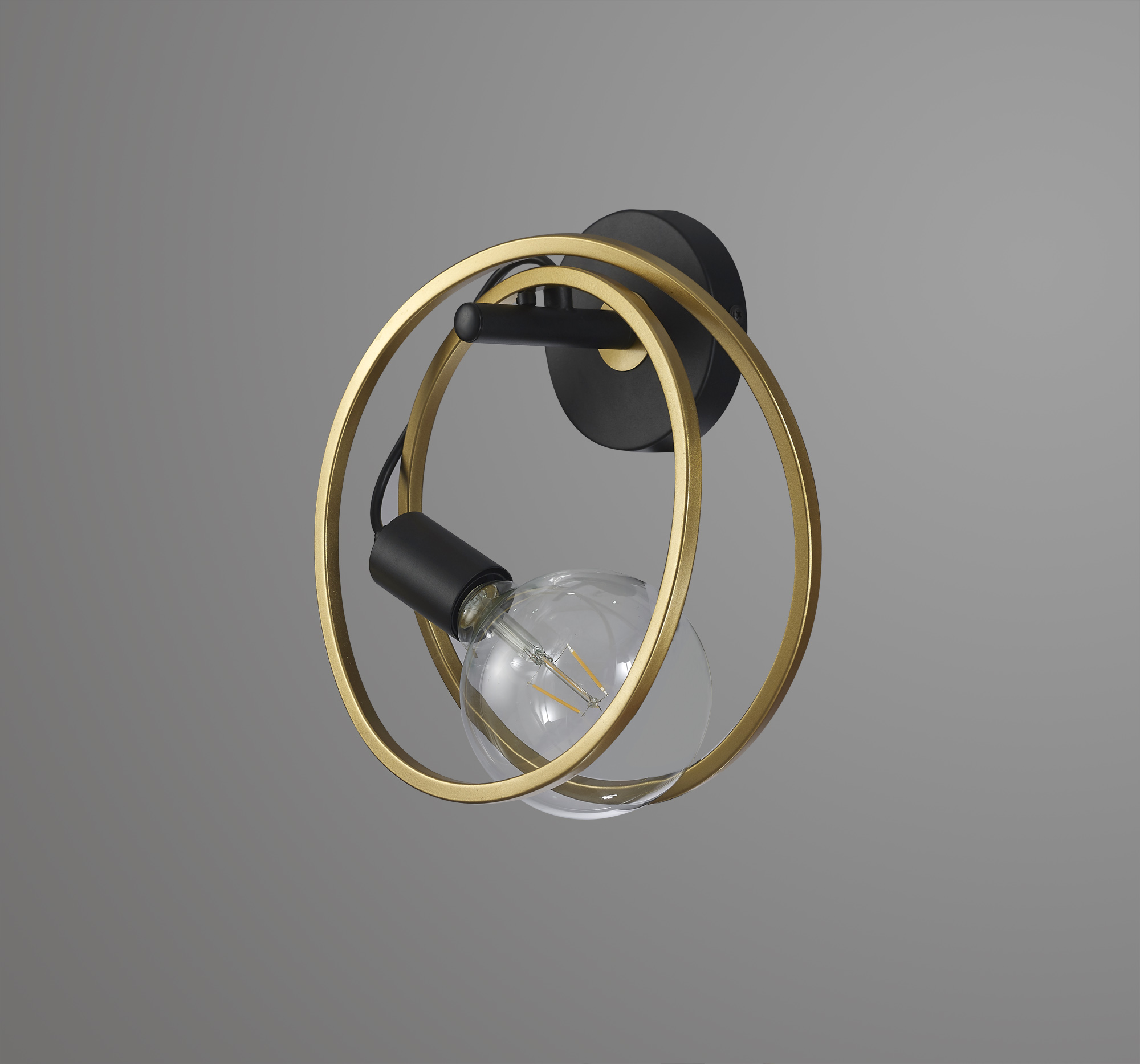 Circle Double Ring wall light, 1 Light E27, Matt Black / Painted Gold
