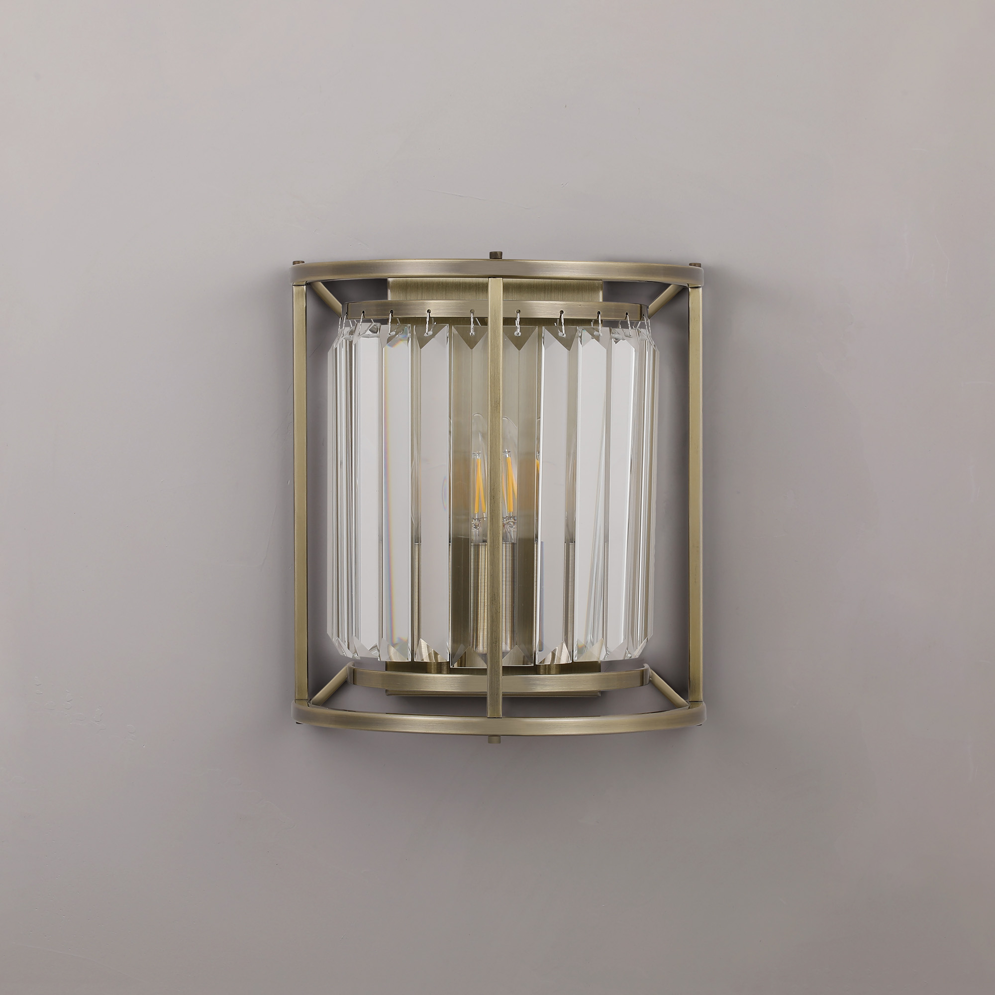4008111 Charles 2 Light Crystal Wall Light Antique Brass