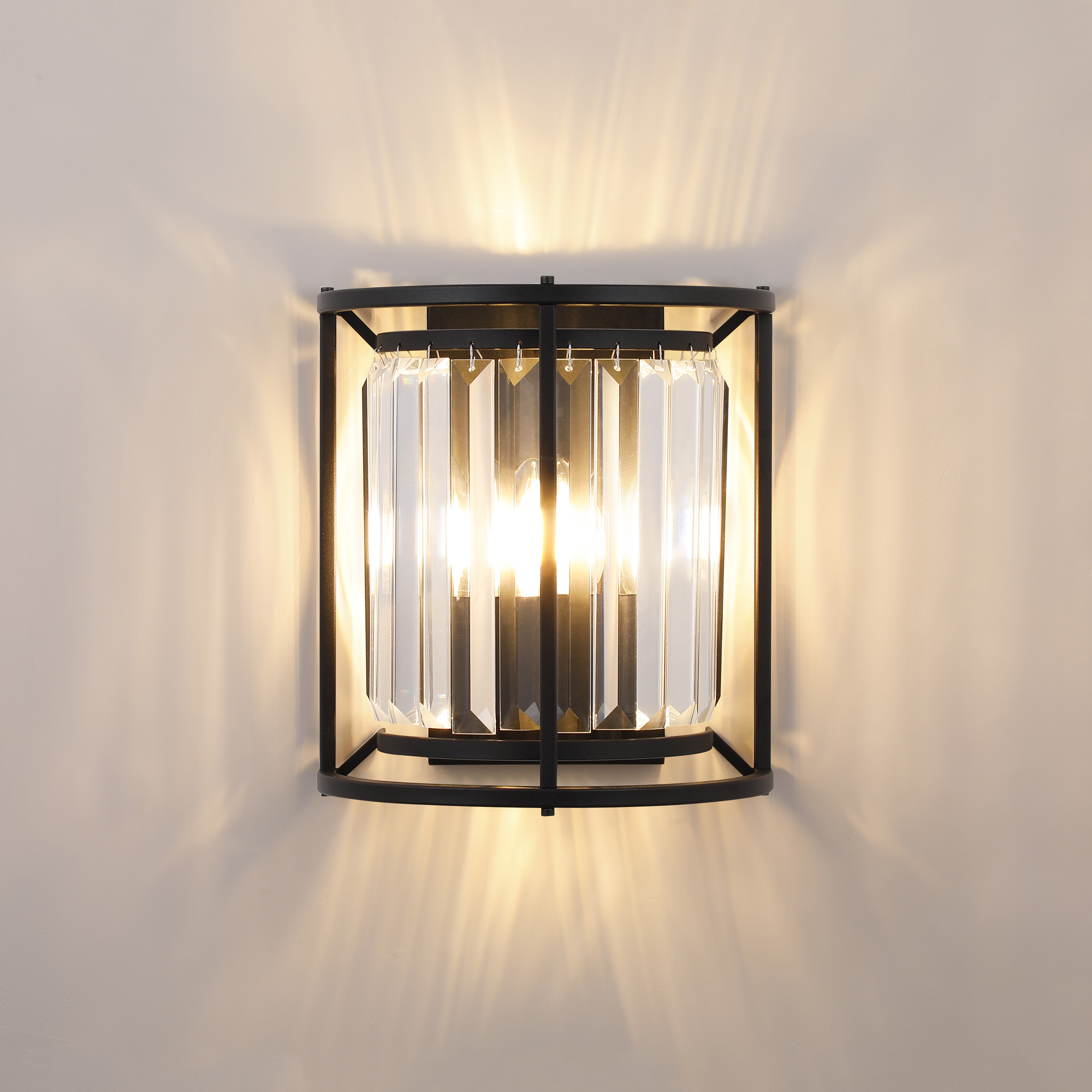 4007911 Charles 2 Light Crystal Wall Light Satin Black