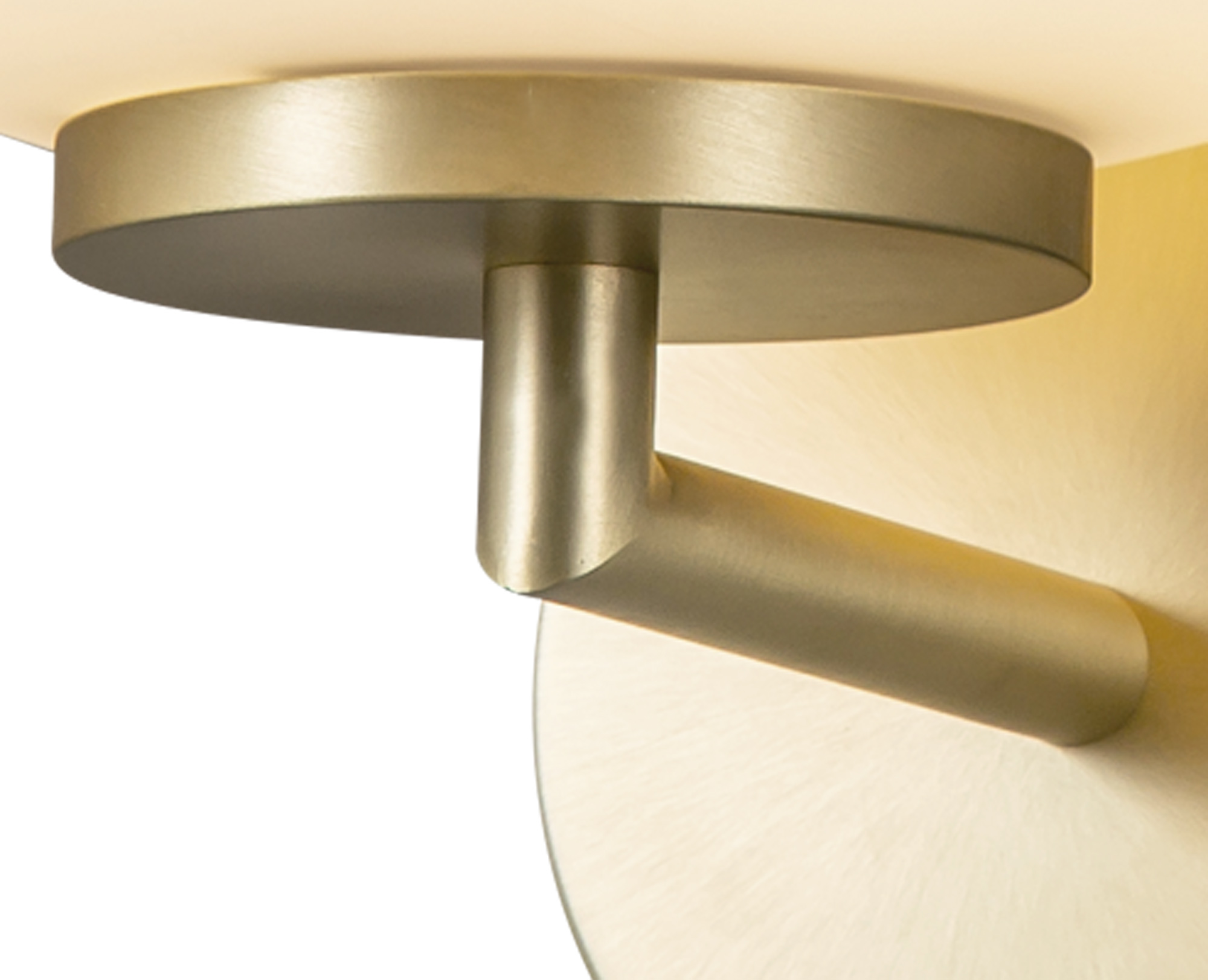 A satin gold wall light with opal glass