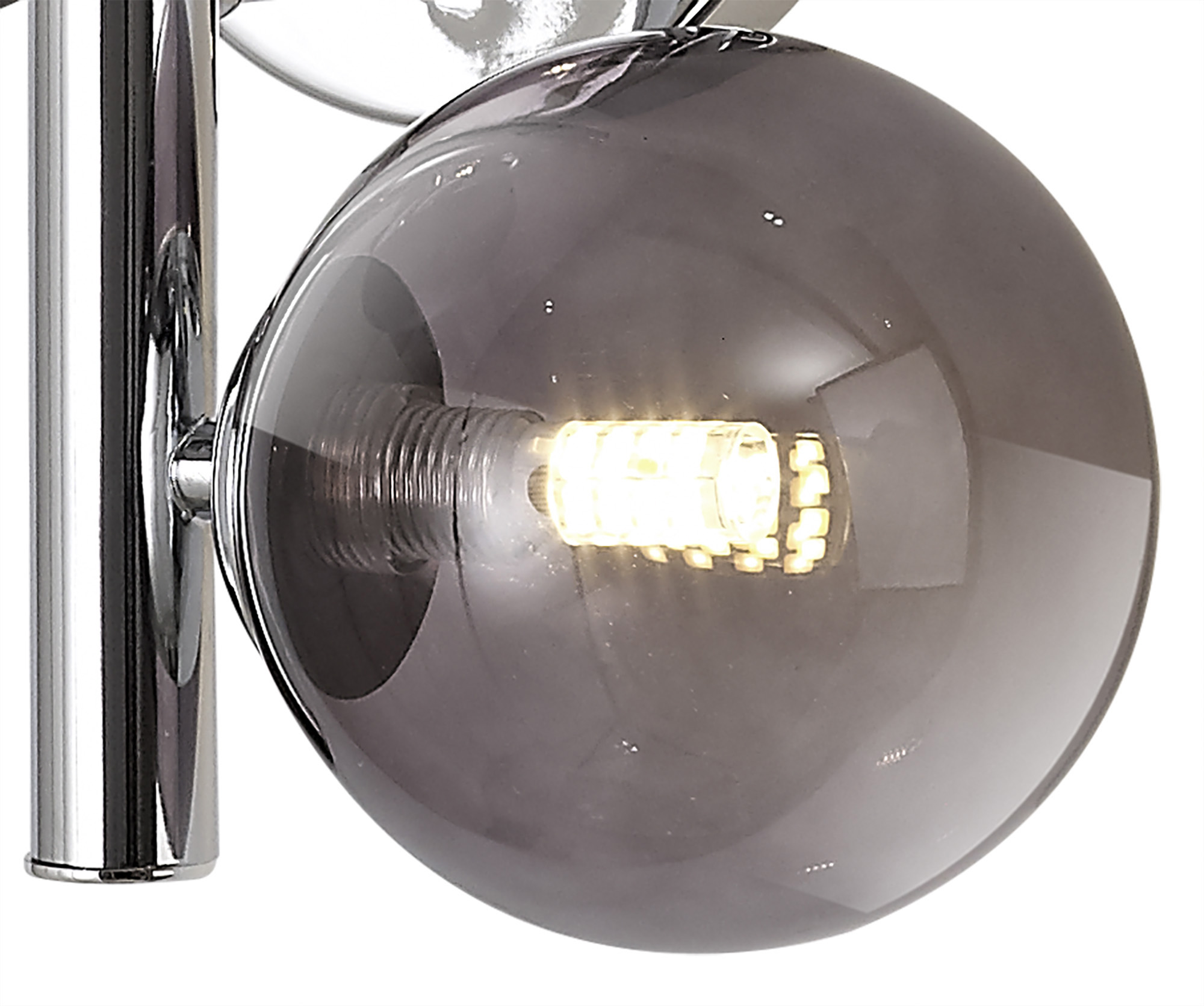 The Moon range has a Polished Chrome base with a collection of different sized glass spheres in Black, smoked and clear.