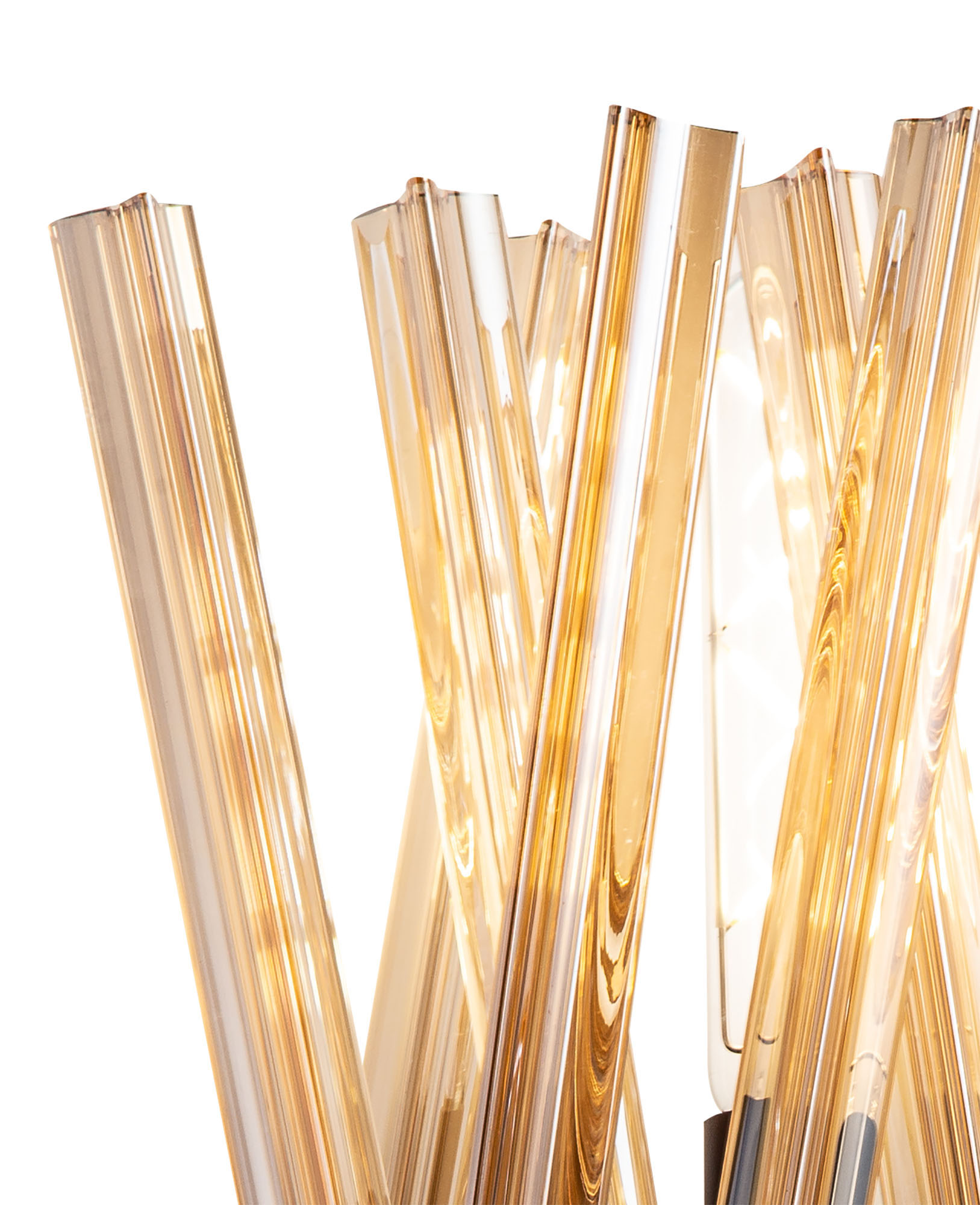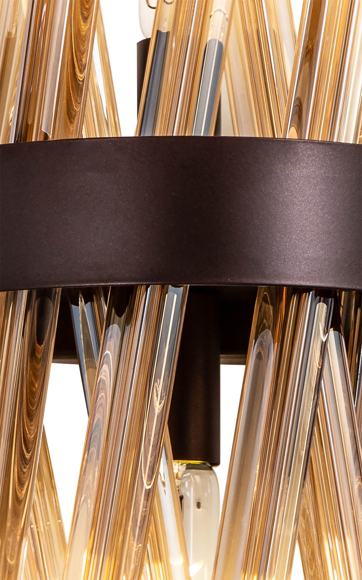 The Cleo collection presents an intriguing glass shape moulded into a three dimensional triquetra. The grooves along each sized glass create an appealing optical effect which is effortlessly enhanced with the use of tubular lamps.
