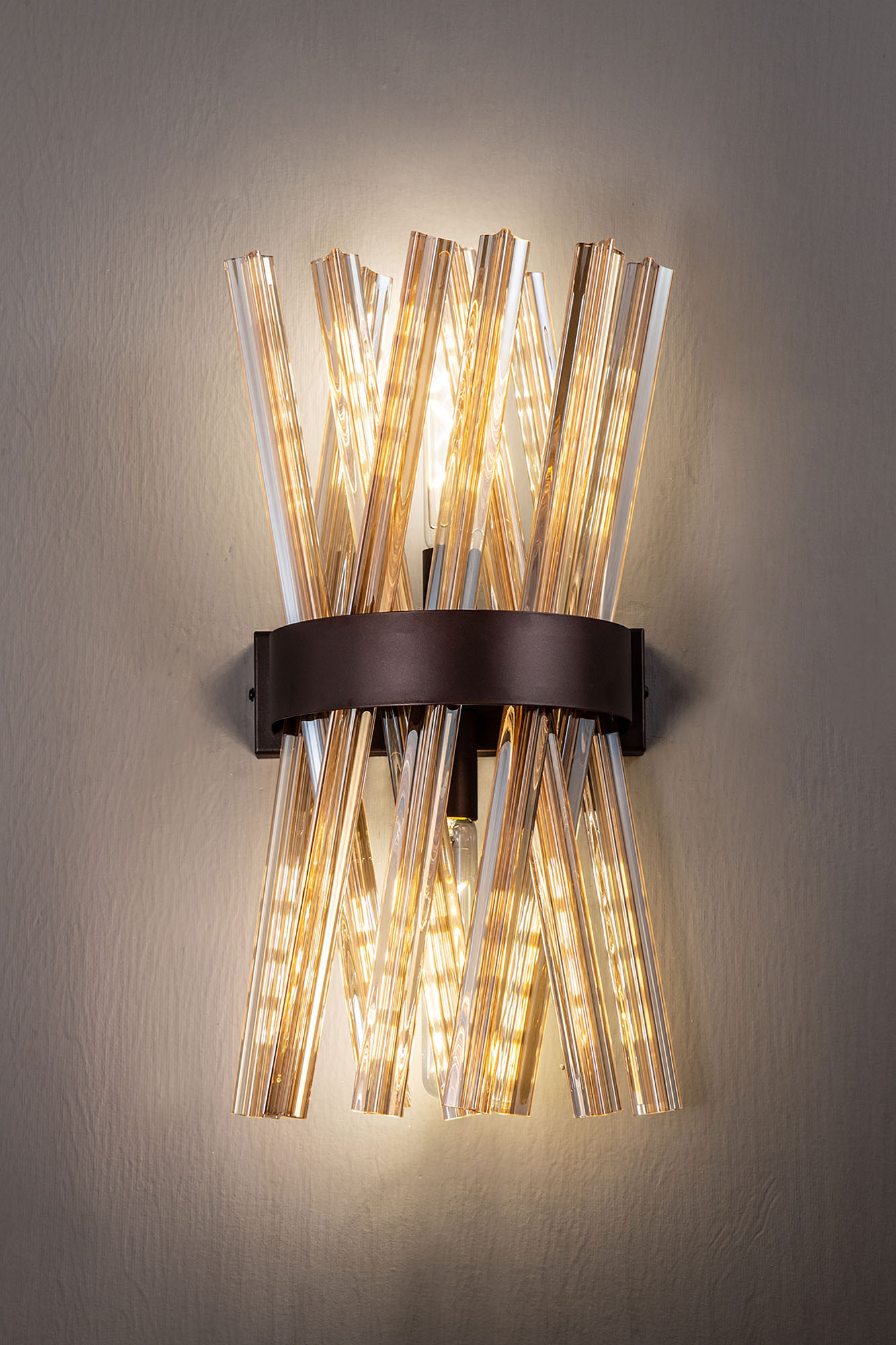 300117 Cleo 2 Light Wall Light Bronze Oxide/Champagne Glass