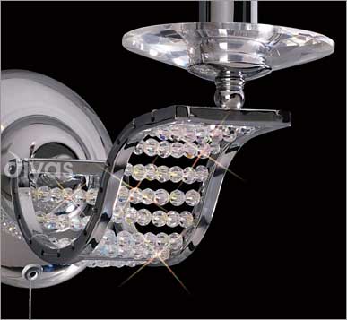 This truly amazing wall light is finished in Polished chrome with strings of asfour crystals, Centre coloumn is topped with a sphere cage edge with asfour crystals.