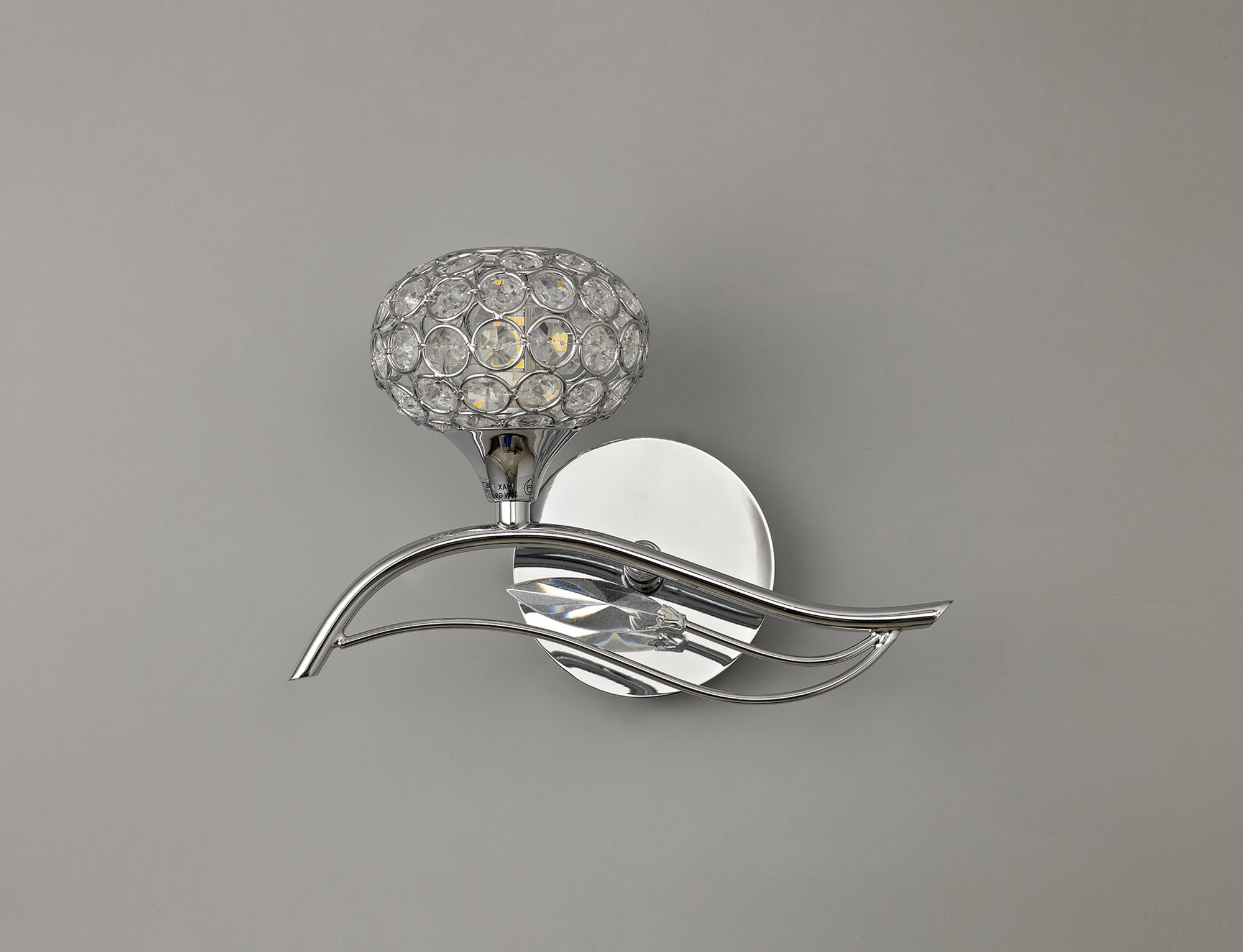 This Elegant fitting is finished in polished chrome. with elegant framework housing a crystal leaf. The crystal shades makes this collection that extra special & unique.