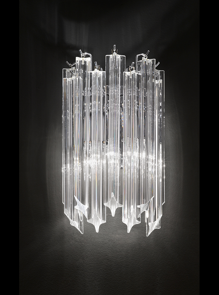 Italian angle cut crystal wall bracket, on a chrome base plate