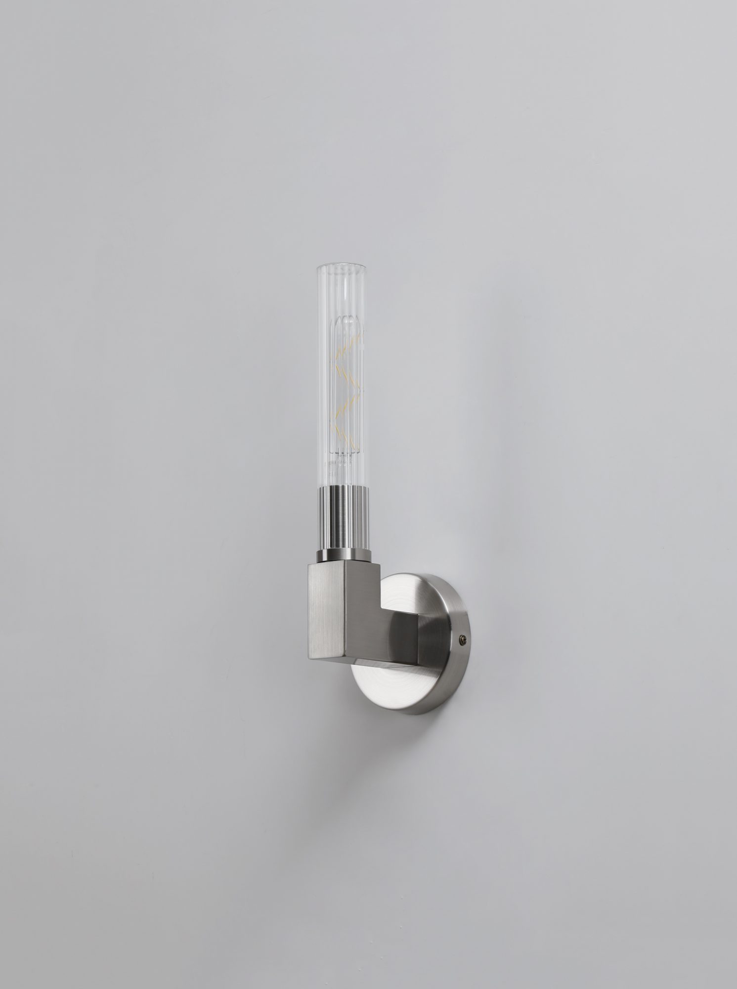 Asmin is a sleek and stylish IP44 lighting collection. The slim, grooved, tubular glass make the design ideal and cohesive for use in bathrooms.