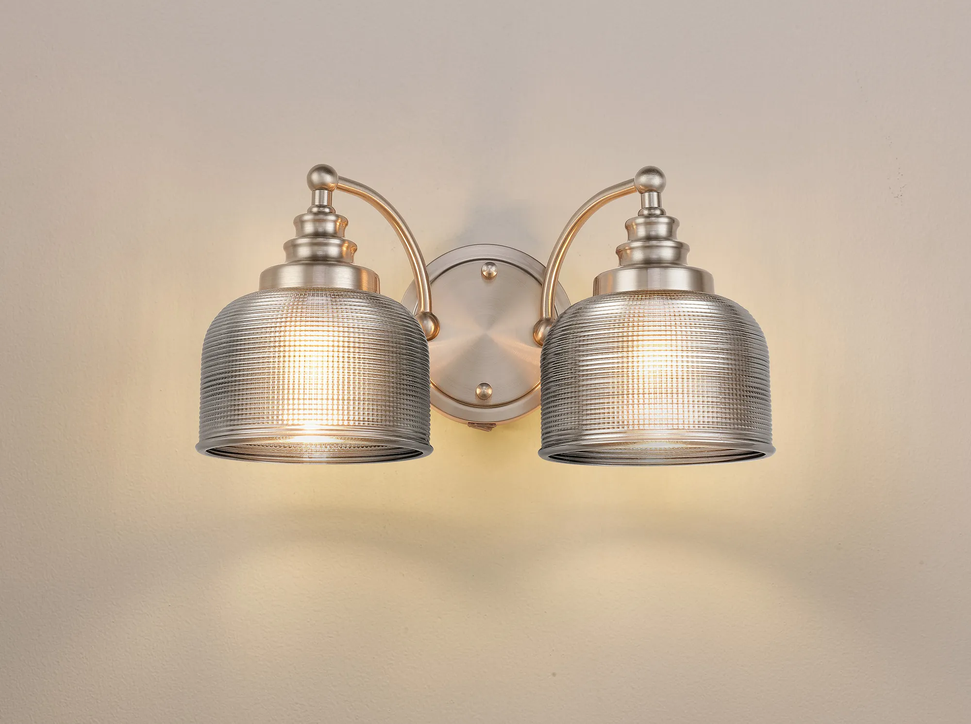 50011576 Sherborne Twin Wall Light Satin Nickel / Smoked Glass Shades